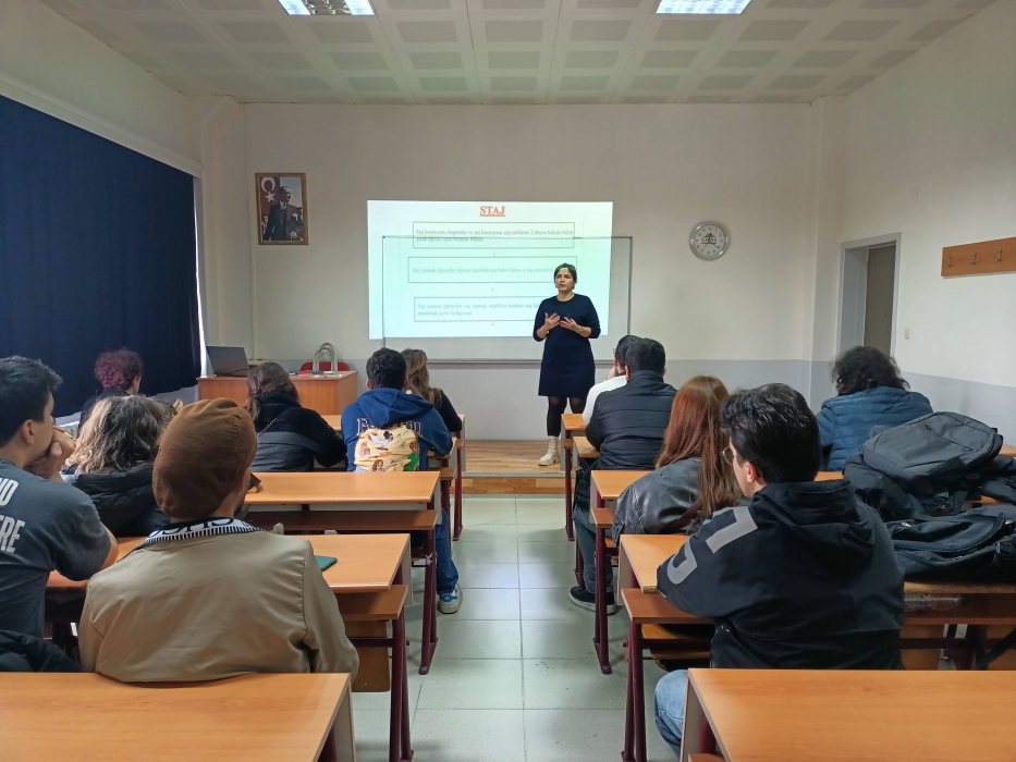 Toplantıda, stajın önemi, başvuru süreci, staj yeri seçimi, zorunlu evraklar ve staj süresince dikkat edilmesi gereken hususlar detaylı olarak anlatıldı. Öğrencilerin staj sürecine doğru bir şekilde hazırlanmalarını sağlamak amacıyla, karşılaşılabilecek durumlar ve çözüm önerileri de paylaşıldı.